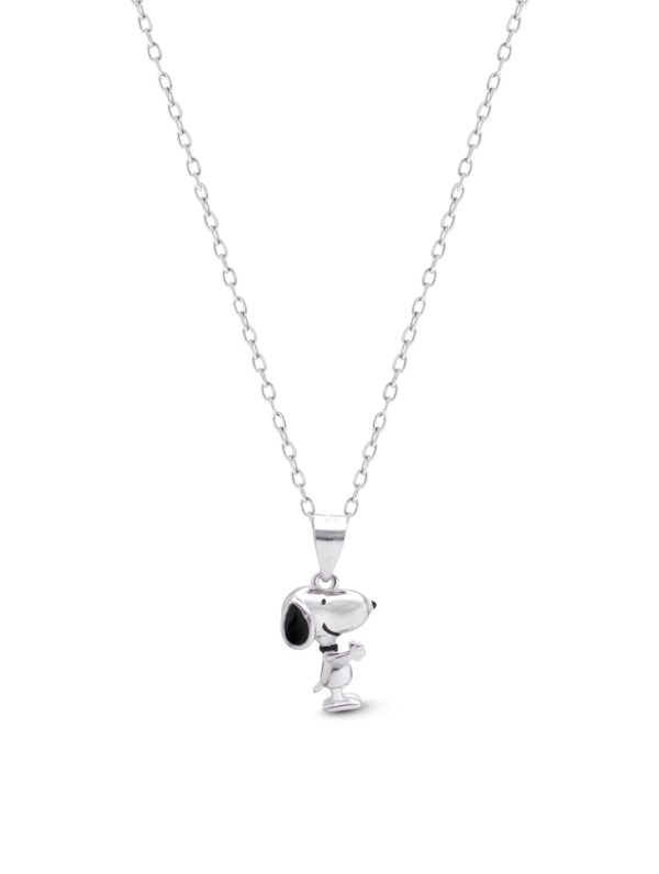 Whimsically crafted, this chain features an adorable pendant inspired by a beloved cartoon dog, instantly recognizable for its playful charm and timeless appeal. The silver-tone pendant captures the character’s iconic silhouette, detailed with bold black accents that highlight its sweet personality.
